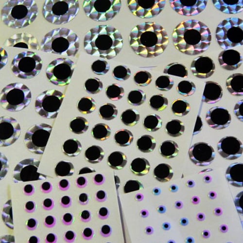 Superb self adhesive eyes in 7 popular sizes. Custom large pupil design.